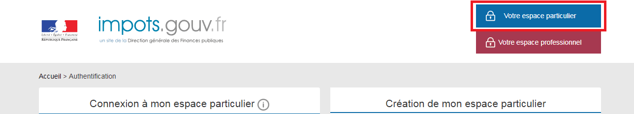 Première étape, connectez-vous au site du gouvernement fiscal et identifiez-vous via la fameuse case bleue dédiée à l’espace personnel. Si jamais vous avez égaré votre numéro de TVA, consultez cet article sur la façon de retrouver un numéro de TVA perdu.