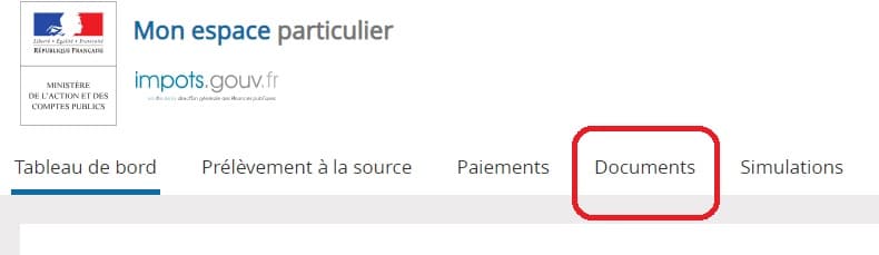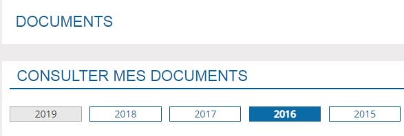 Une fois connecté sur tax.gov, il suffit de cliquer sur l’onglet « documents » qui s’affiche en haut de la page d’accueil. Vous accédez alors à une liste complète, année par année, de vos justificatifs fiscaux.